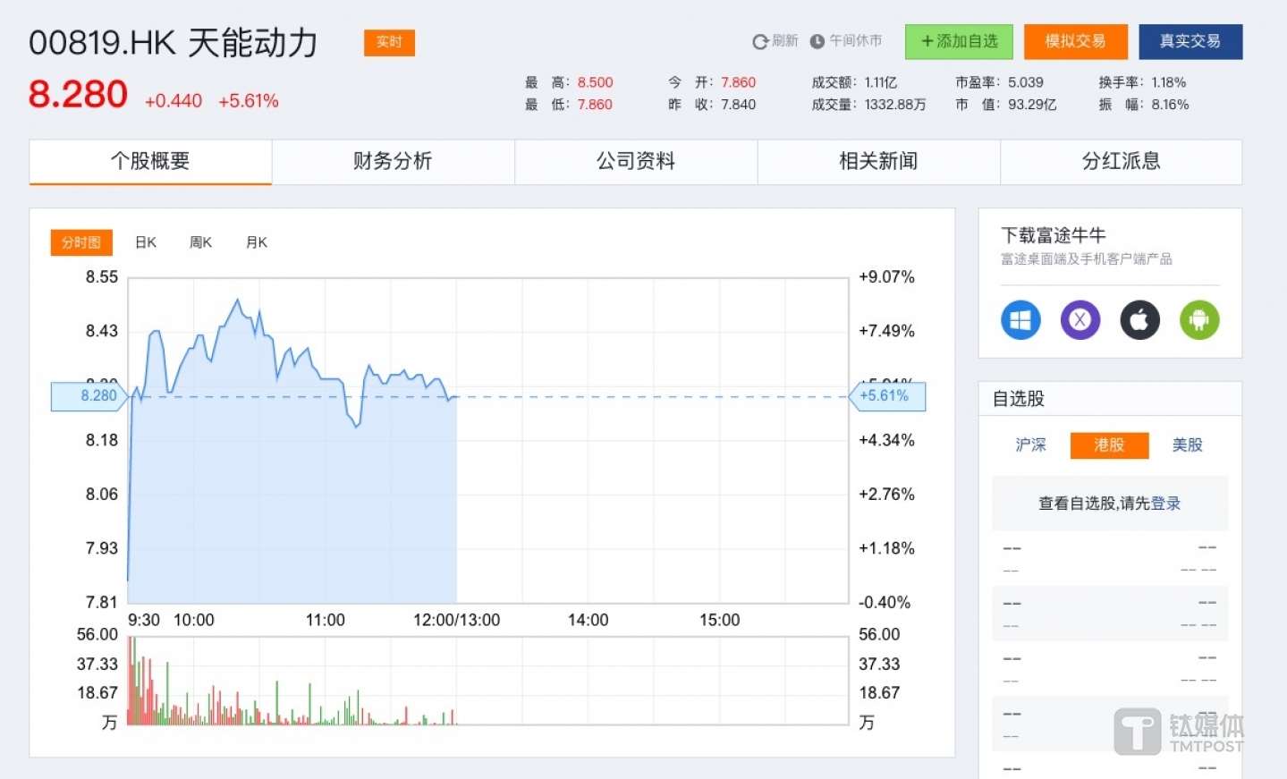 受报告影响,天能动力在6月1日早盘第十四分钟下跌2%,9:50开始稳步回涨,此后也有下跌迹象,截止6月1日午盘休市前,天能动力报8.280港元。