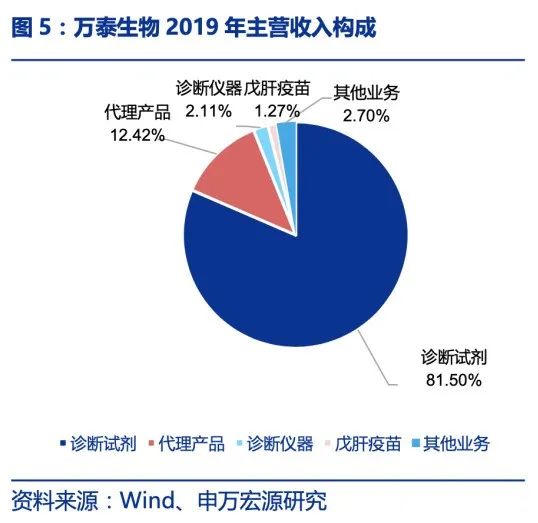 根据其招股说明书,万泰生物在艾滋、肝炎、结核、登革病毒等方面形成了特色检测产品。2019年,诊断试剂和诊断仪器为万泰创造了12亿元的营业收入,占比超过八成。