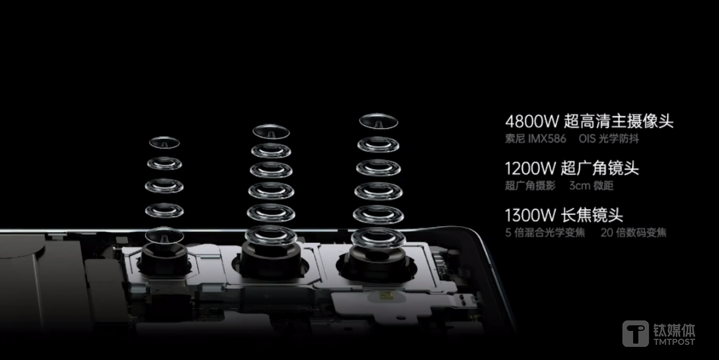 硬件方面,OPPO Reno4 Pro后置由4800万超清主摄+1200万超广角+1300万长焦+激光对焦组成。其中广角采用了索尼定制的IMX708 超广角视频镜头,具备16:9视频定制画幅、超大像素尺寸、120°超广视场角,支持四合一像素聚合。
