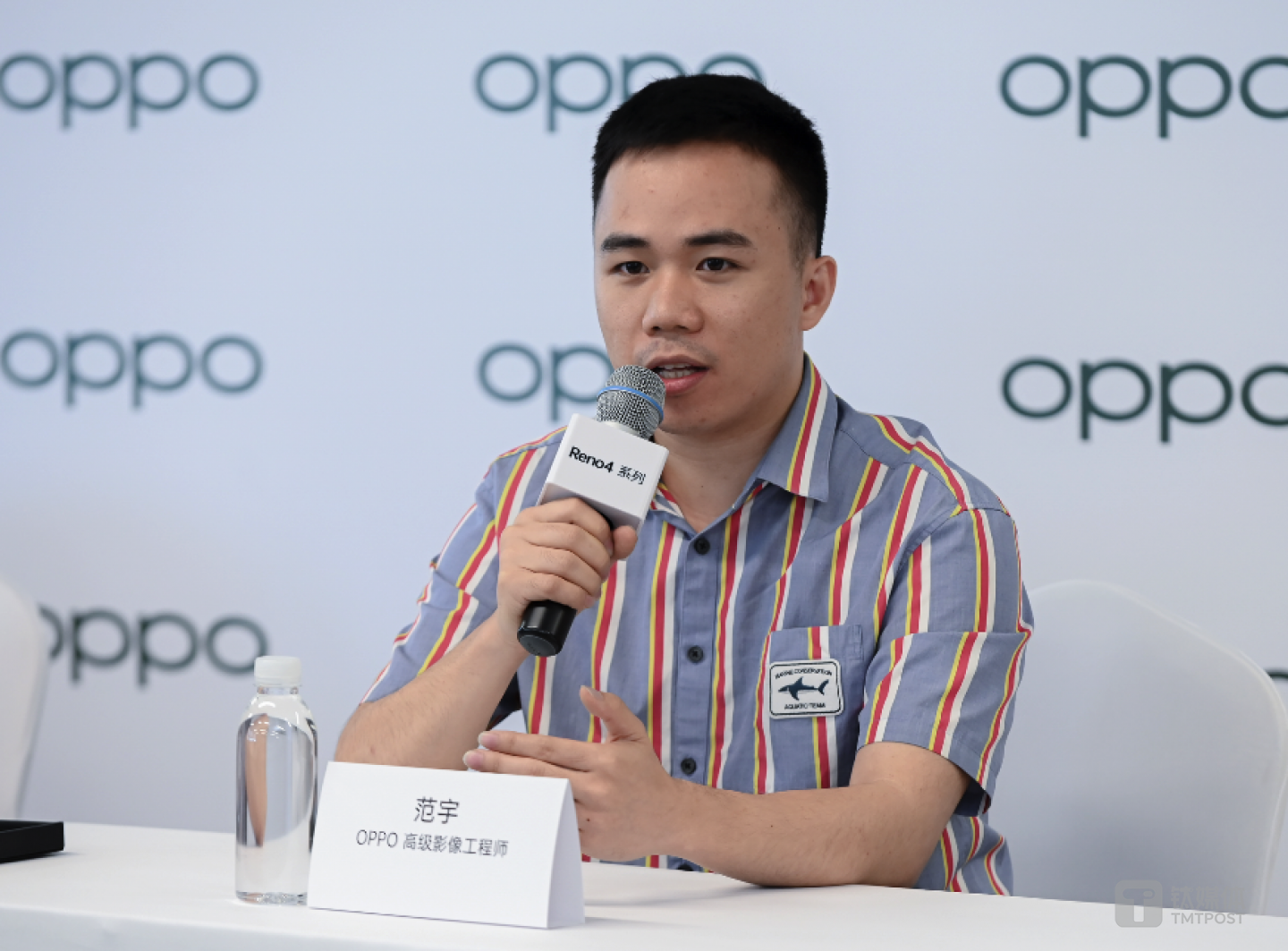 钛媒体在会后也对Reno4系列的产品经理和影像经理进行了采访。首先,Reno4系列最大的外观改变,就是那个“Reno Glow”的大LOGO设计。目前,智能手机市场也有不少近似设计出现,但OPPO此次的转变却来源于对年轻市场的调查。
