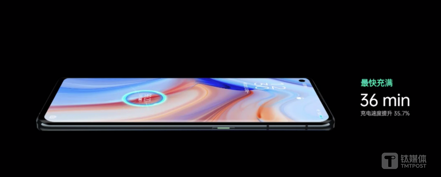 闪充一直是OPPO产品主要优势技术之一,此次OPPO Reno4系列更是全系标配65W 超级闪充。