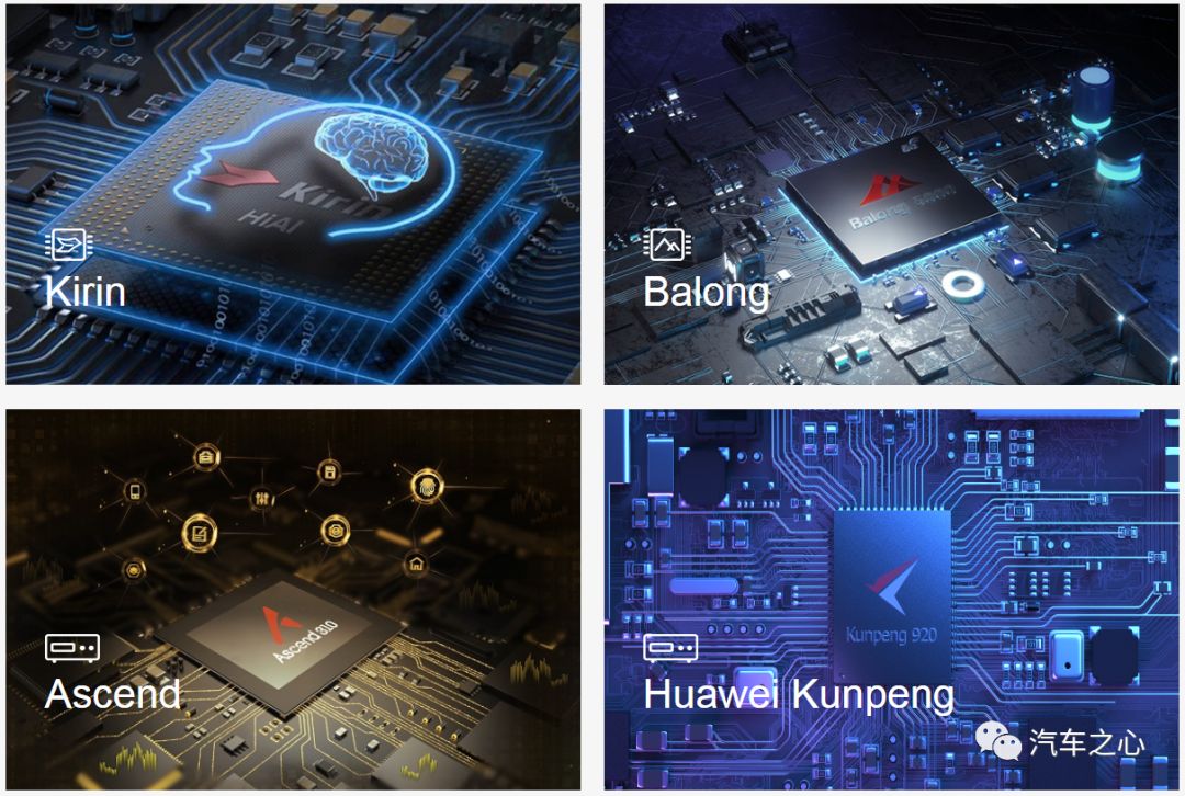 在汽车之心此前的文章中,我们对华为智能汽车相关芯片进行了梳理,目前其产品主要有构建 MDC 智能驾驶平台的 AI 芯片昇腾以及高性能 CPU 鲲鹏,还有应用在智能座舱层面的 5G 通信芯片巴龙 5000。