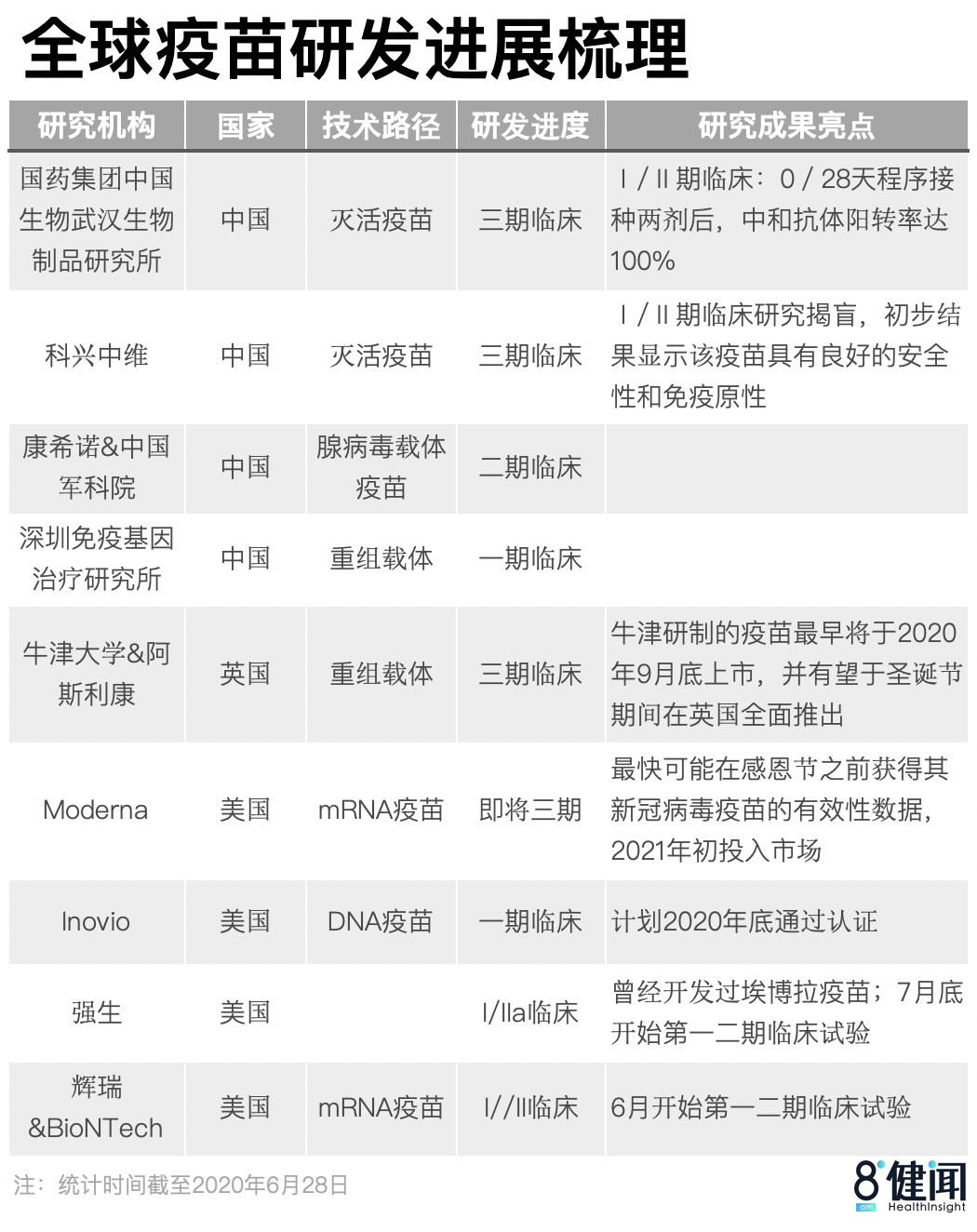 6月26日,WHO宣布,2021年底前向世界提供20亿剂疫苗,其中50%将提供给中低收入国家。目前全球已有超过200个候选疫苗,其中15个正在进行人体临床试验。