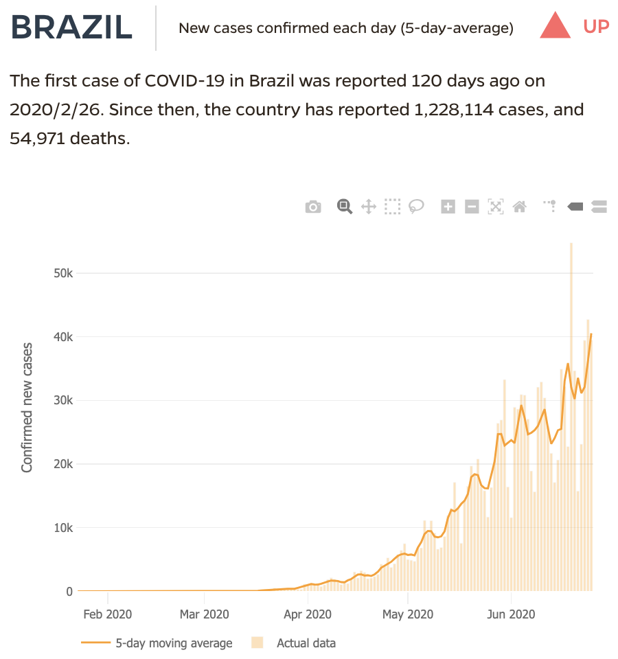 第二波疫情会不会来还不知道,但第一波疫情却是真真切切地没过去,而且在高速增长。