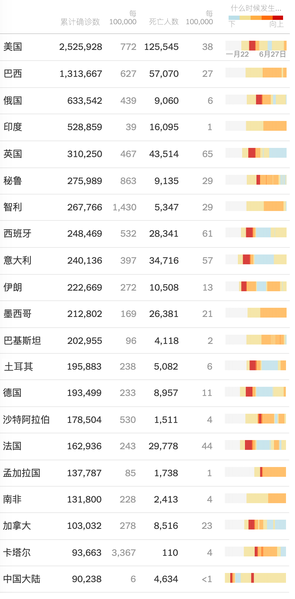 病例数超过50万的有俄罗斯(63.3万)和印度(52.9万),超过10万的还有英国、秘鲁、智利等15国。
