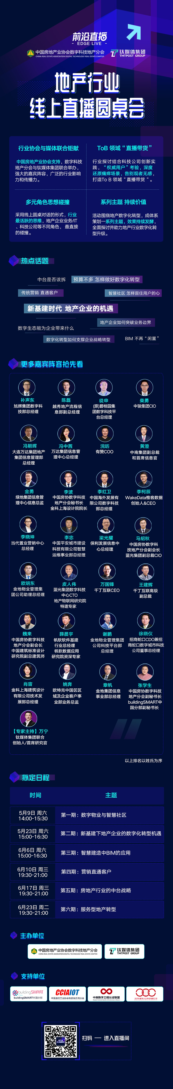 为此,各房地产企业纷纷开始思考如何在行业中脱颖而出,受到更多客户的青睐和认可,而转型服务型地产便是其中一个重要的答案。在这样的背景下,线上圆桌会第六期于6月23日上线,多位重量级嘉宾在钛媒体集团联合创始人&首席研究官万宁的主持下,围绕“服务型地产转型”,深入探讨地产企业进行服务型转型的必要性、方向、难点及策略。