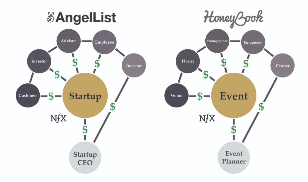 当年,旧金山一家叫HoneyBook的35人创业公司获得2200万美元的B轮融资时,大多数人并没有认识到这笔交易的不同寻常——几乎所有头部的硅谷VC都参与了竞争。因为HoneyBook代表了一类重要的新型的数字创业公司,它结合了社交网络(Facebook)和交易平台(Airbnb)的优势,我们称之为市场网络。