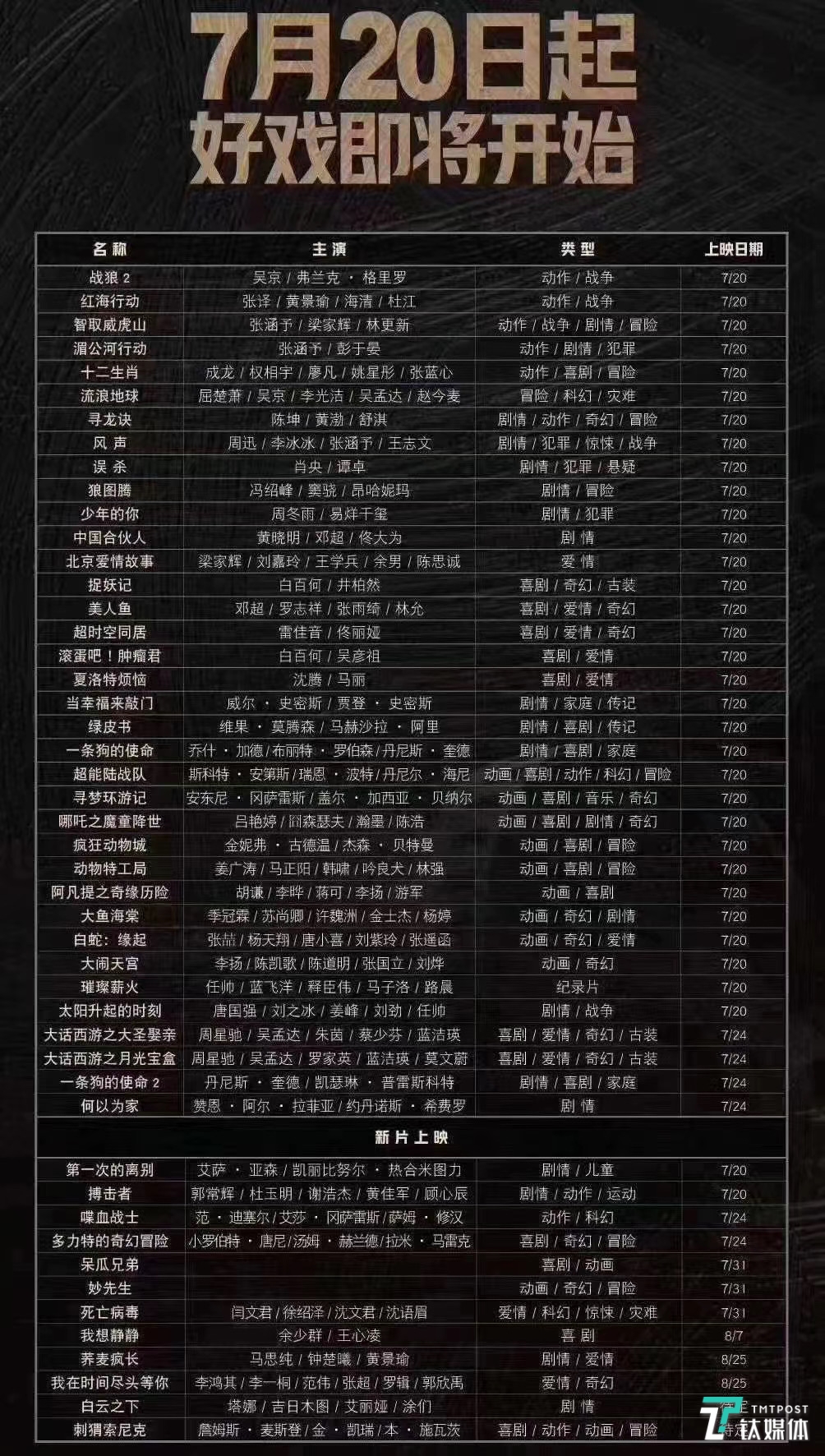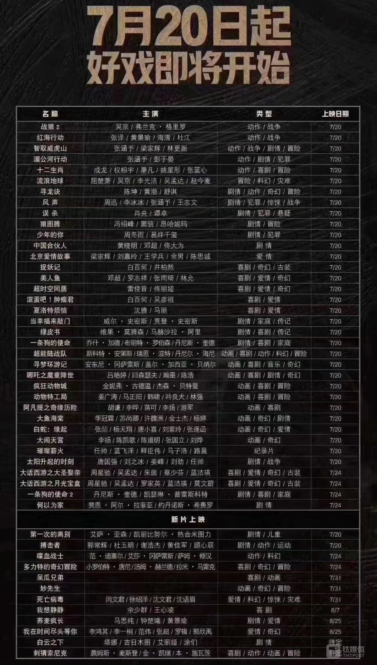 范·迪赛尔主演的动作片《喋血战士》则是3月13日疫情在北美暴发前上映过,如今在中国上映倒是赶上暑假档。不过这两部好莱坞电影的外媒口碑都不理想,且线上资源早已流出。