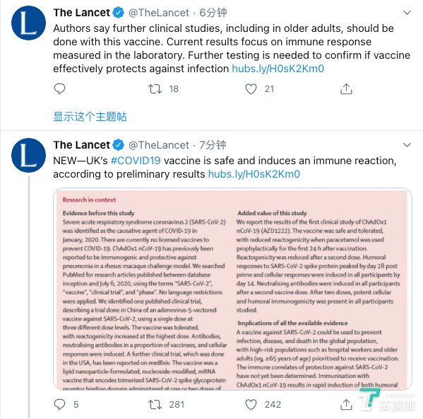 值得一提的是,《柳叶刀》昨晚同时公布了英国牛津大学、阿斯利康和康希诺合作研发的Chadox1 ncov-19新冠候选疫苗I期实验成果。