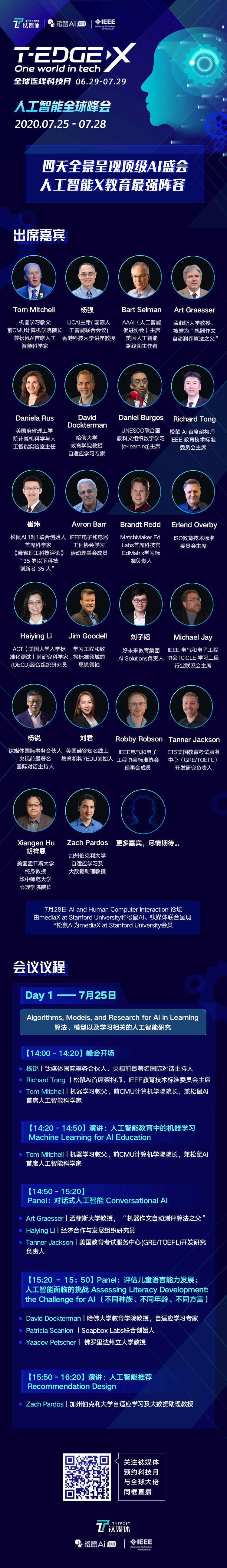 硬核嘉宾的其中之一是被誉为机器学习“教父”、前CMU计算机学院院长兼松鼠Ai首席人工智能科学家的 Tom Mitchell 教授,另一位则是松鼠Ai首席架构师、IEEE教育技术标准委员会主席 Richard Tong。锁定钛媒体 T-EDGE X 全球科技月直播间(https://m.tmtpost.com/watch/bCN1vy),敬请期待三位嘉宾的高峰对话。