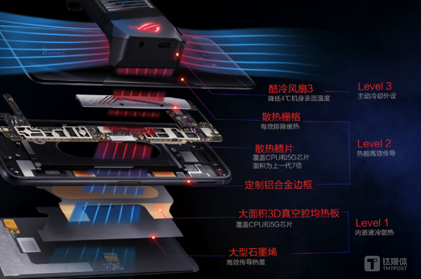 此外,ROG游戏手机3还提供外置的酷冷风扇3,相比酷冷风扇2风速提升40%,可为手机再降温,同时可解锁X模式Lv3状态。
