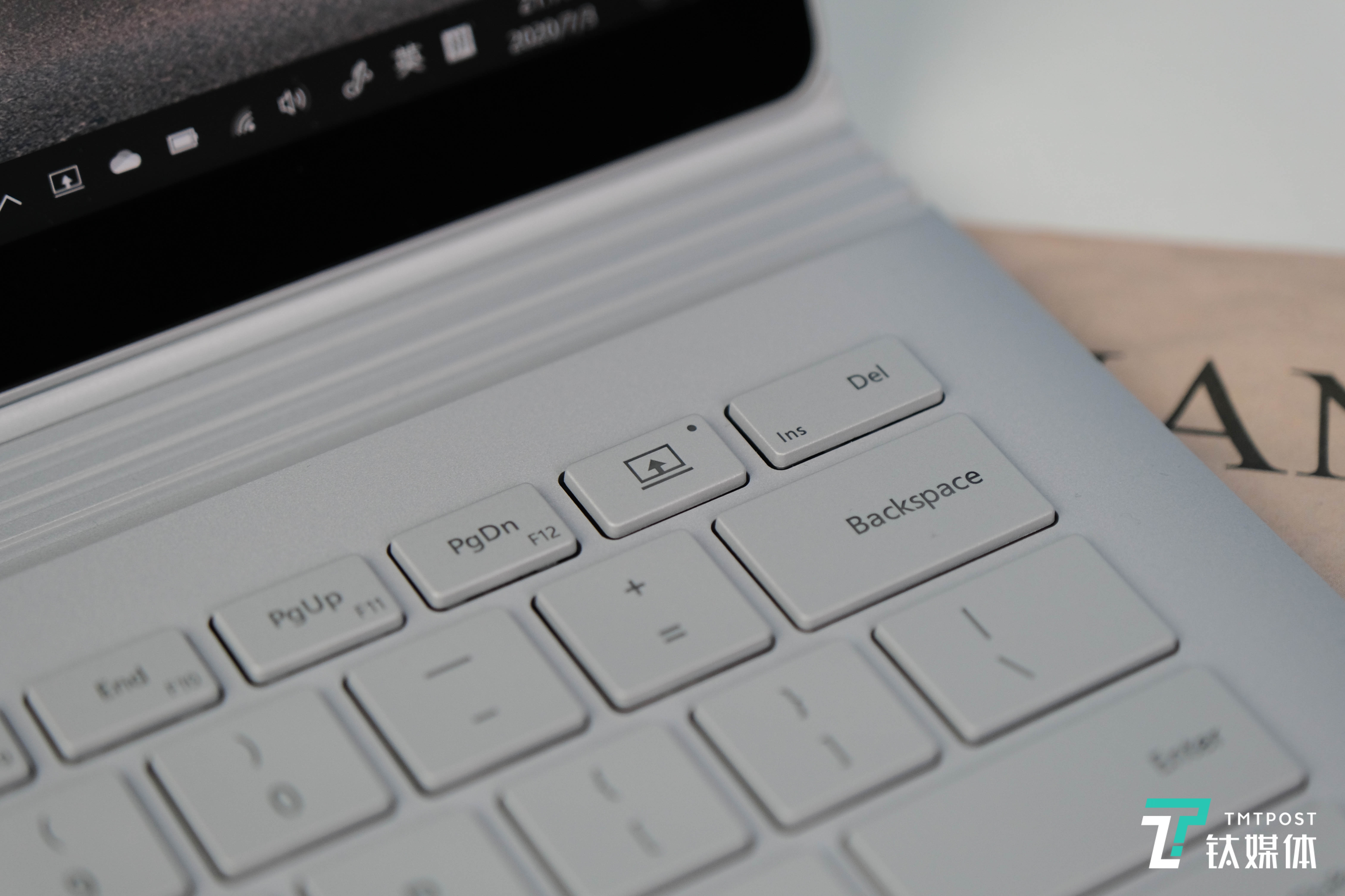 需要注意的是,键盘的右上角还有一颗专用的“分离键”,按下之后即可一键分离屏幕。所以在使用键盘的时候,一定要小心,避免按下。