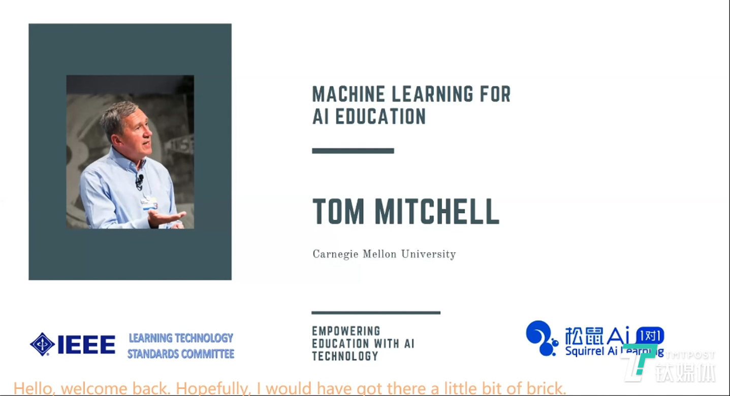 在7月25日当天,全球机器学习“教父”、前CMU计算机学院院长兼松鼠Ai首席人工智能科学家的Tom Mitchell教授发表主题演讲。分享他在机器学习之于人工智能教育(Machine Learning for AI Education)的议题上的最新思考成果。