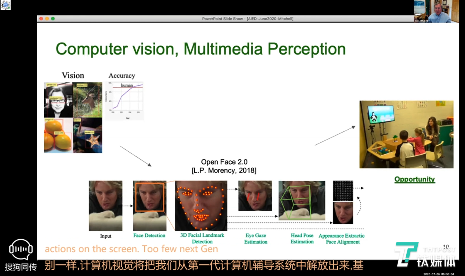 在语音识别方面,Tom Mitchell教授表示,AI不仅可以进行语音文字转录,而且还能进行简短的对话,这是非常的进步。即便技术存在一些限制或者是改进的空间,但我们也可以清楚看到,AI在语音方面的技术进步已经变得更加关键,更加有用。