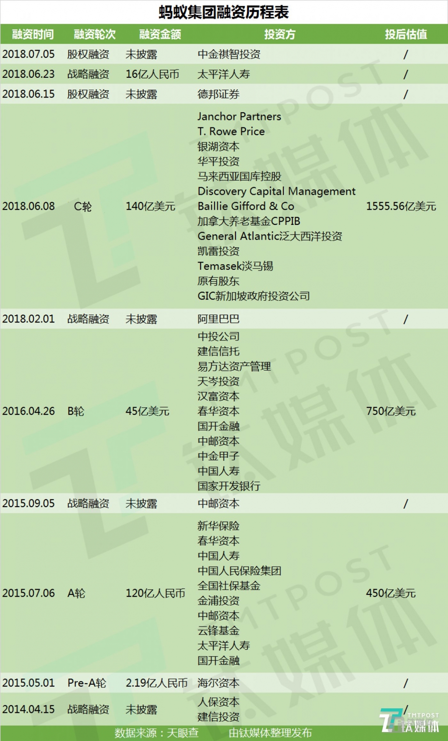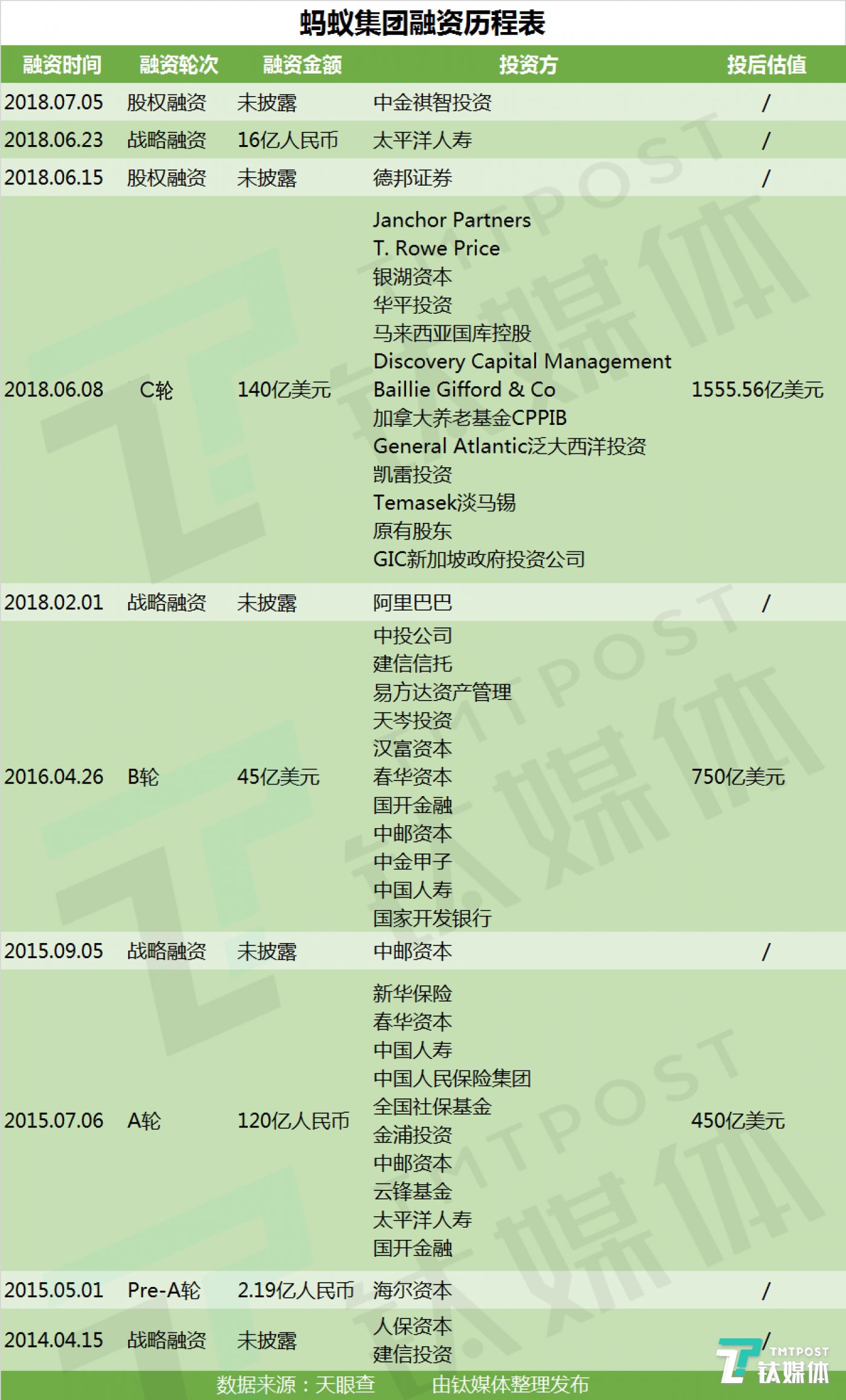 蚂蚁集团融资历程表