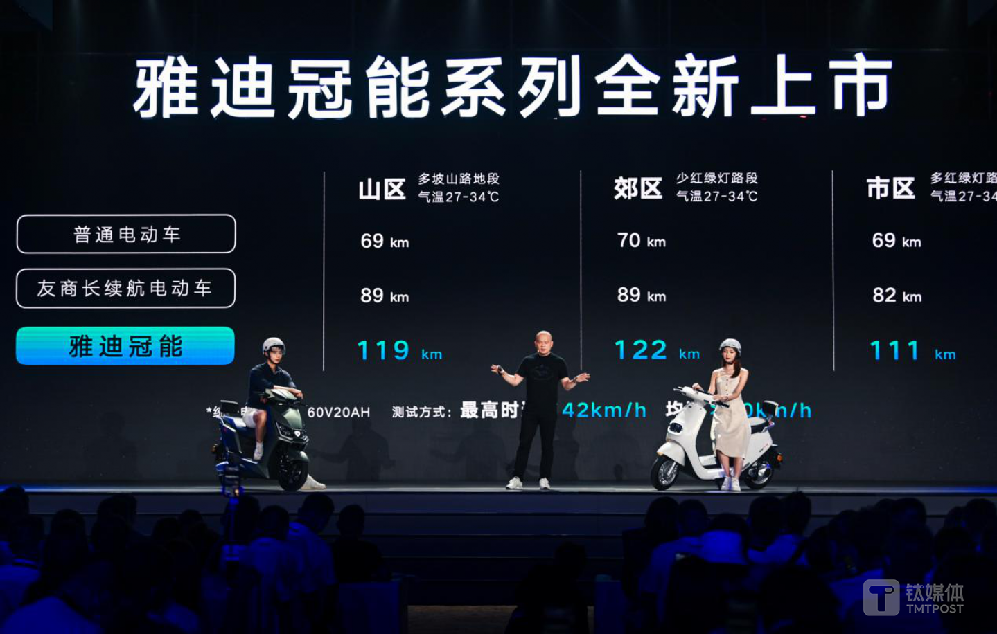 在发布会上,雅迪方面声称自家的新品电动车,在试验中能够做到极速状态下跑到100公里左右的续航,而普通电动车只能实现70~80公里左右的续航,这全都归功于TTFAR(Technology True Far,即为“科技远,真的远”)系统。