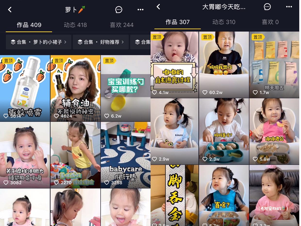这类账号更新频率十分频繁,不少都做到日更,勤勉程度超过90%的抖音红人。从年龄层面来看,宝宝们普遍集中在2-3岁,还处在话都说不清楚的阶段,无形中增加了他们的可爱程度。