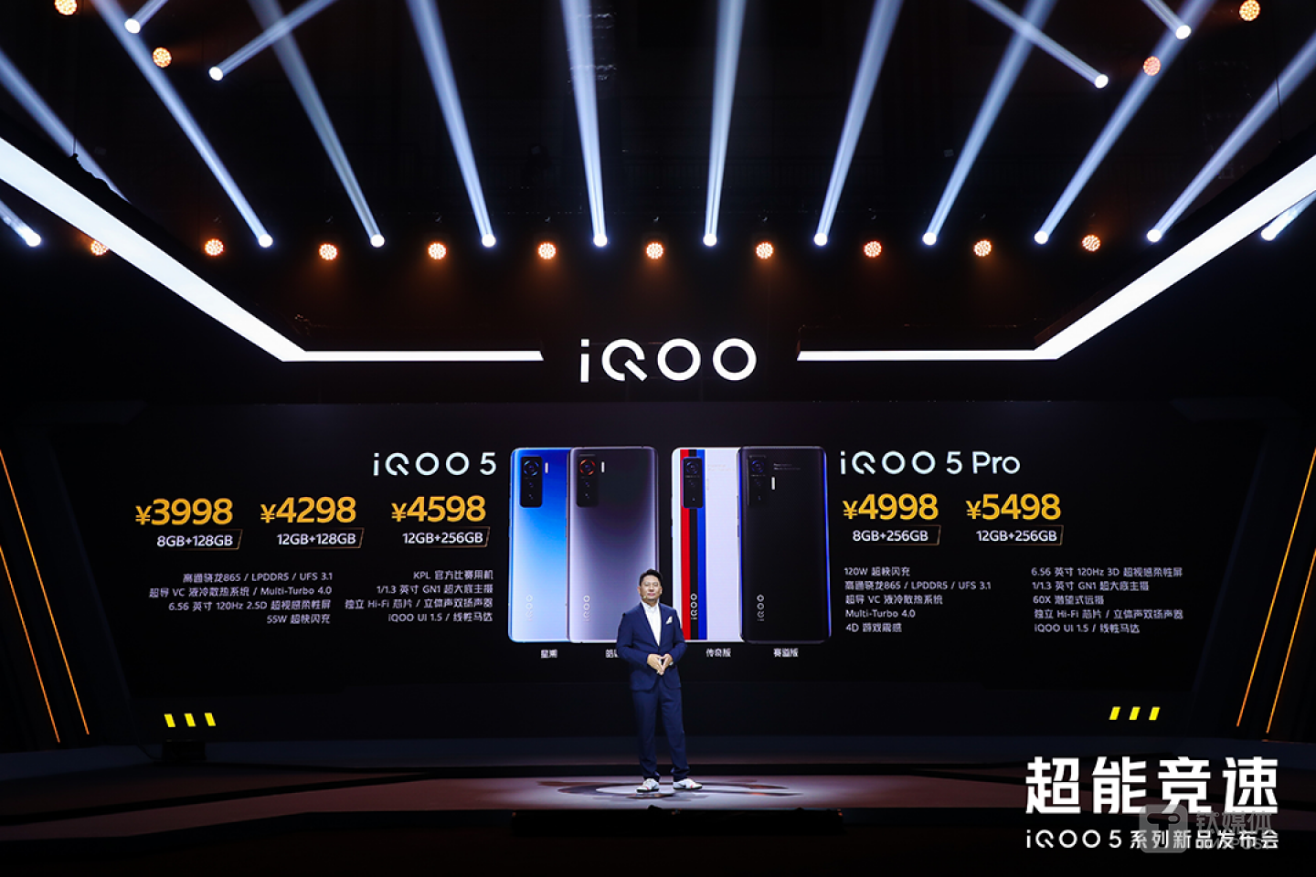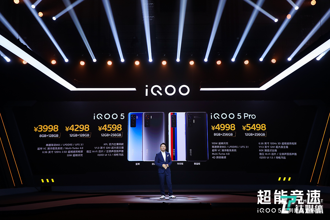最后是售价方面,iQOO 5提供3个版本,8GB+128GB版本售价3998元,12GB+128GB版本售价4298元,12GB+256GB版本售价4598元;iQOO 5 Pro提供2个版本,8GB+256GB版本售价4998元,12GB+256GB版本售价5498元。