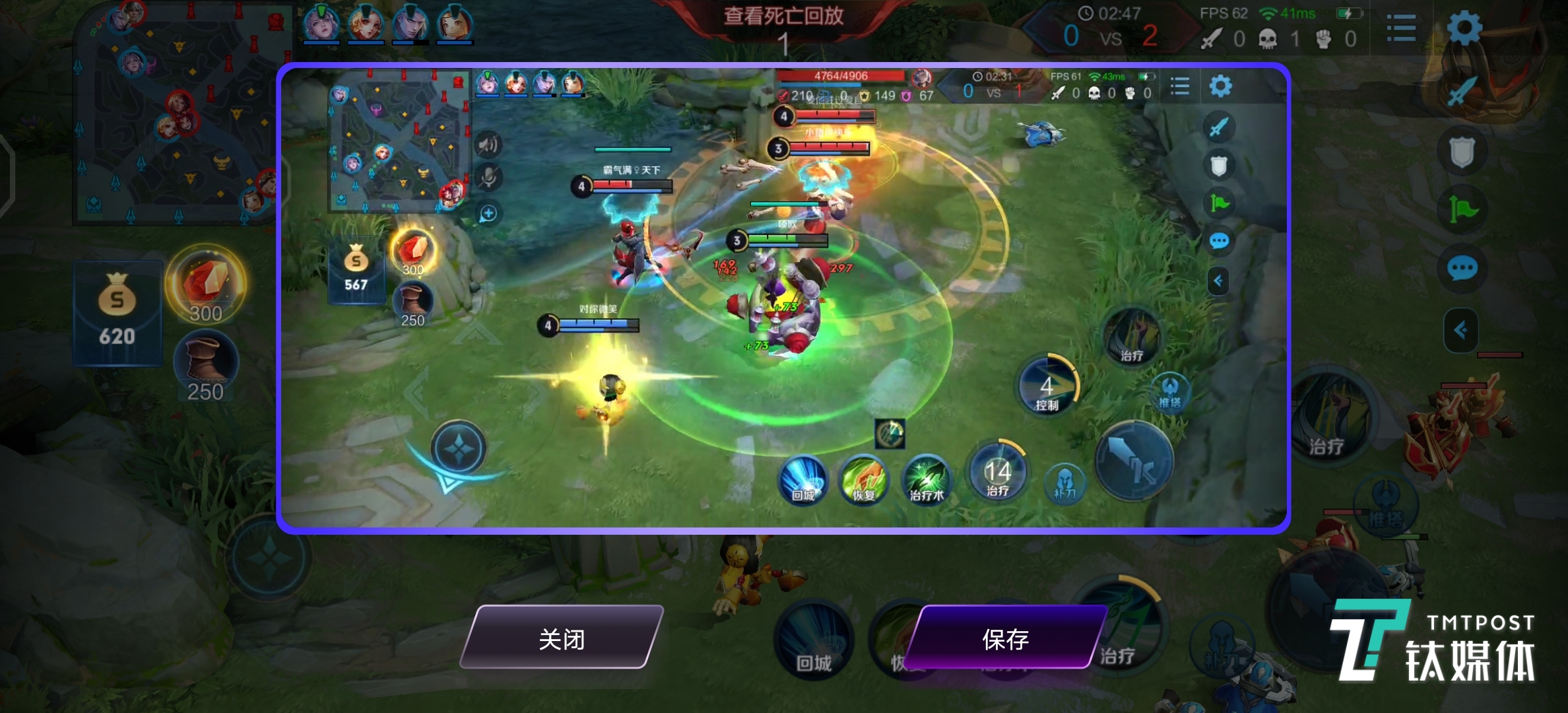 特别值得一提的是英雄死亡回放功能,通过王者荣耀的接口获取用户控制角色被击败的信息,然后使用现有的回录能力往被击败前截取7s视频。帮助用户复盘和跟踪自己在团战中的操作和走位。