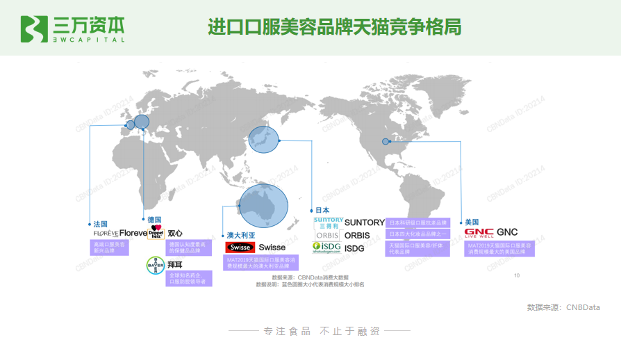 总结一下,中国口服美容市场最先由外资品牌通过美容保健品打开市场,外资品牌也占据了口服美容功能性食品的主流市场,但近年越来越多本土创业公司通过大单品进入传统滋补市场,以中式食补挑战国际巨头,也有部分功能口服美容食品新玩家。