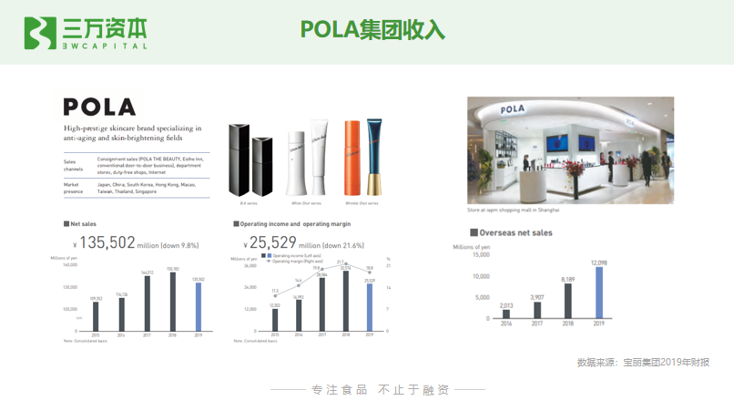 渠道方面,POLA在日本是类似于安利的直销模式为主,进入中国市场初期主要通过代购,近几年陆续开辟天猫旗舰店等电商平台,也在北京、上海、深圳等城市开辟了少量专柜和概念店。目前也在中国发展线下直销体系。