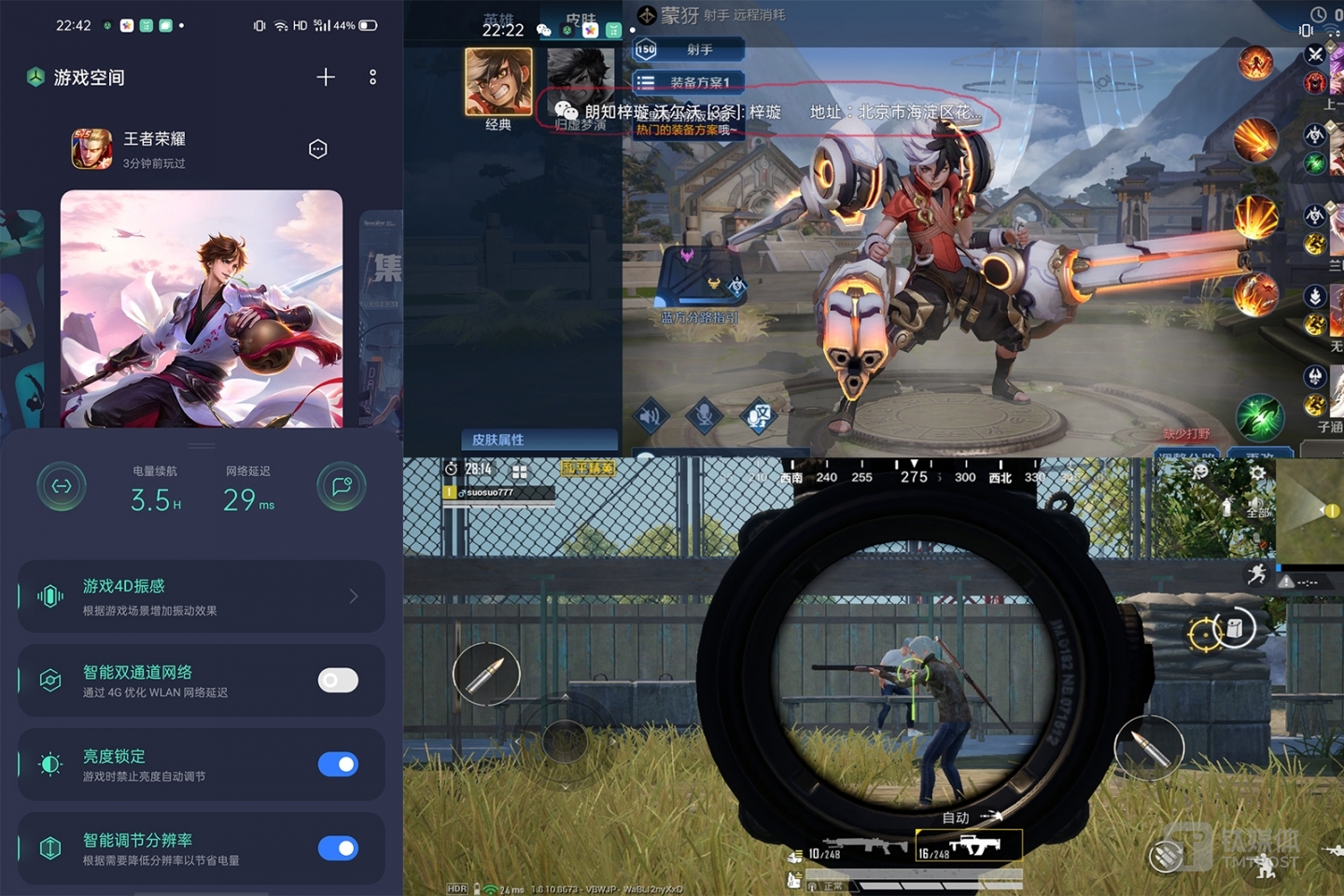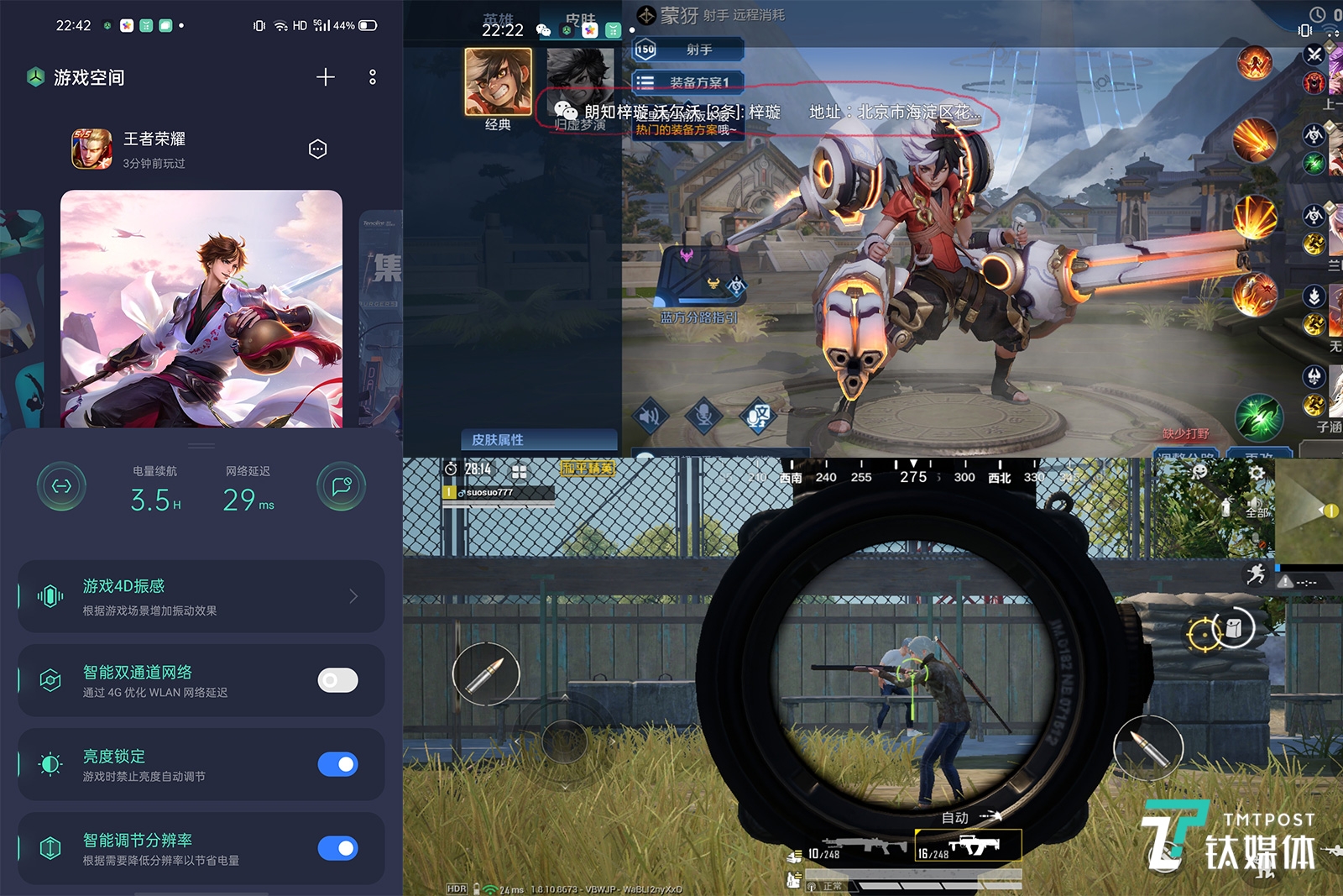 游戏中,还有一个小功能是非常贴心的,社交消息以弹幕的形式呈现,玩游戏也不耽误查看消息。微信、QQ等消息可以小窗回复,输入法同步缩小并可以自由移动。