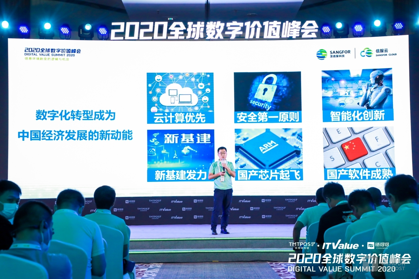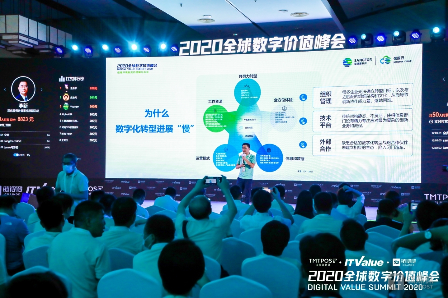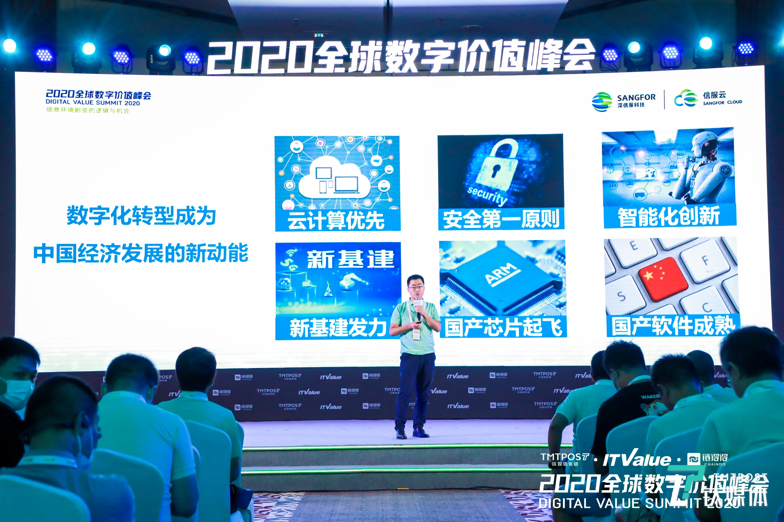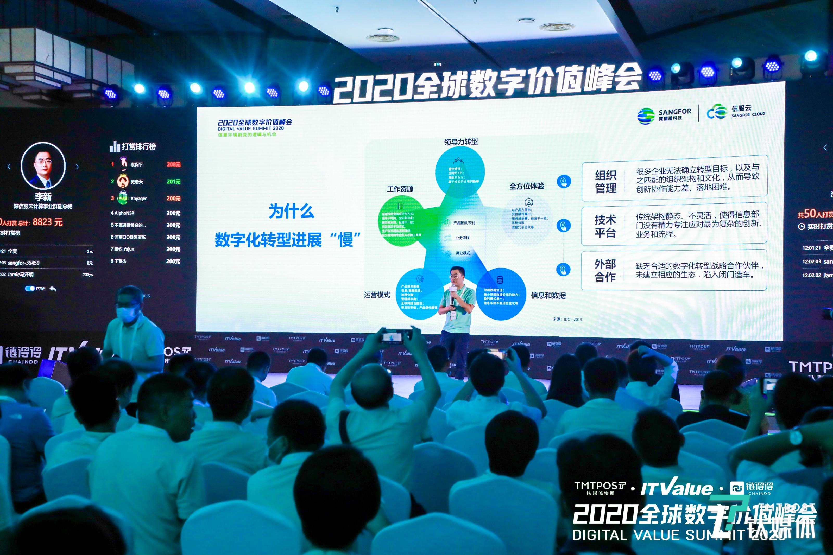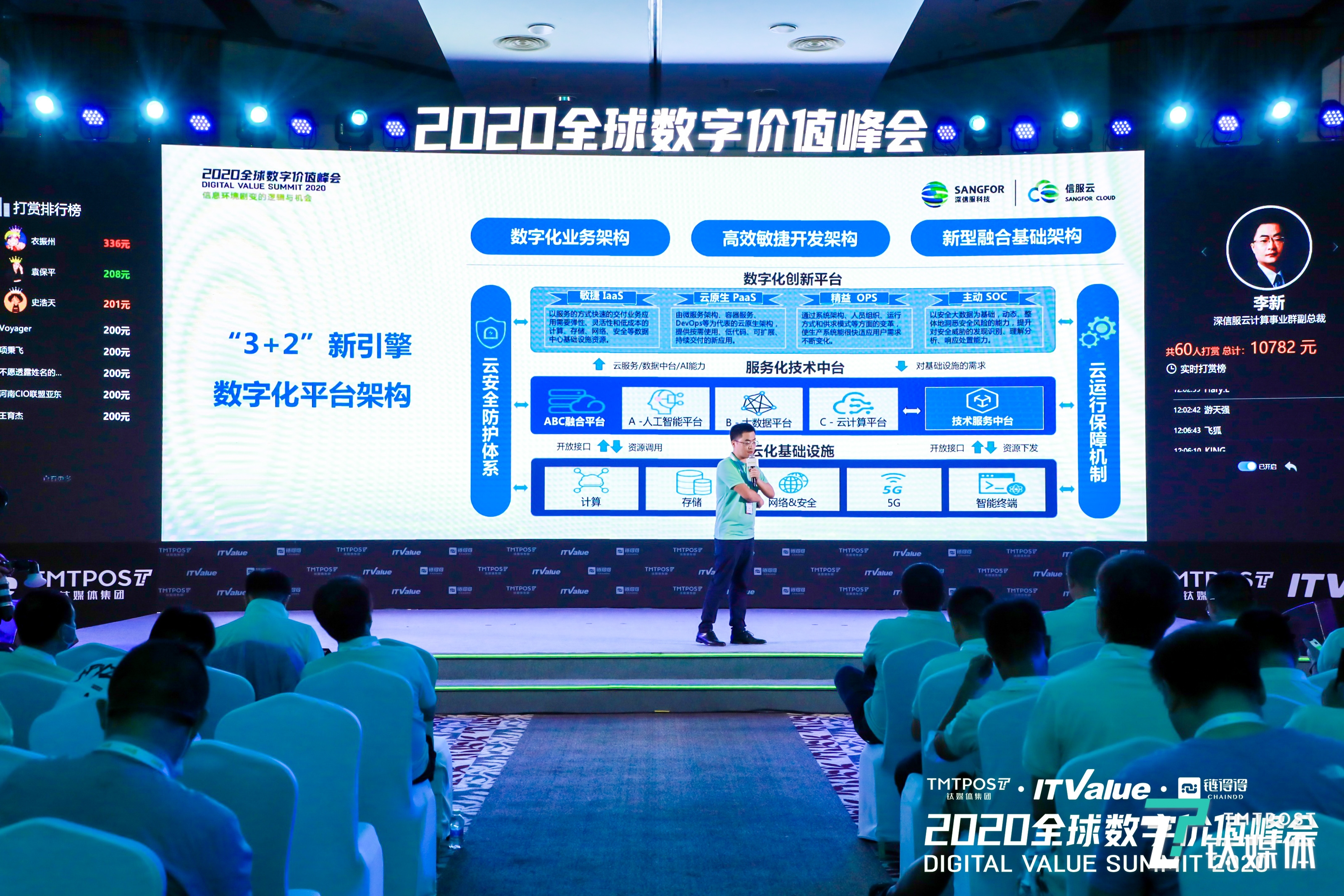 9月3日-5日,由钛媒体和ITValue主办的2020全球数字价值峰会正在三亚进行。第一天日程中,深信服科技云计算事业群副总裁李新发表了《赋能组织数字化转型——新引擎、新技术、新基石》主题演讲。