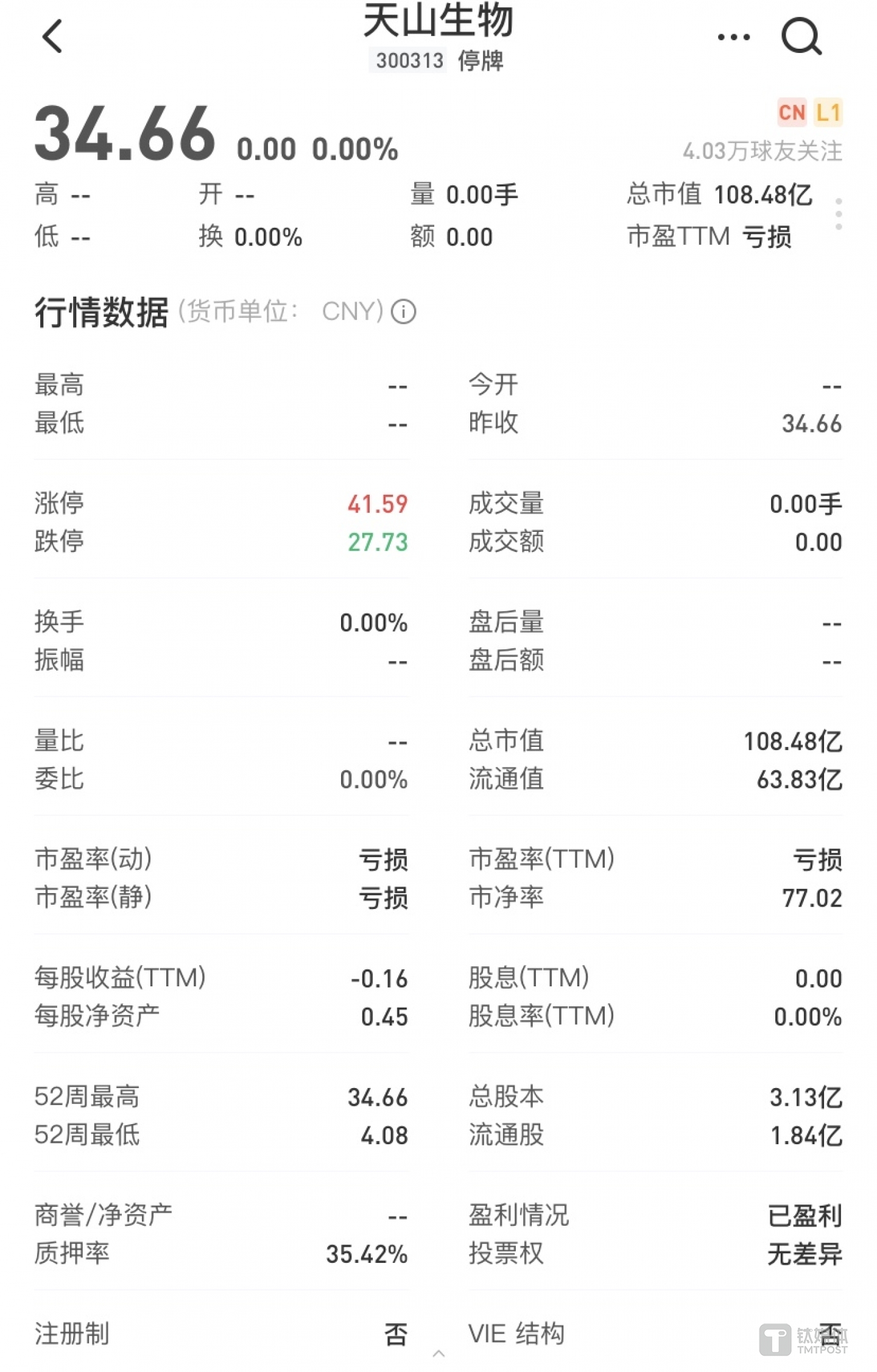 8月28日因股价异常波动停牌核查后,9月9日天山生物再度启动停牌核查,至今复牌尚无时间表。
