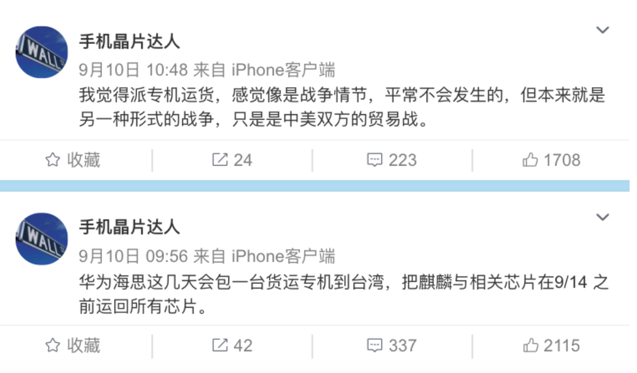 有消息称,华为海思包了一架货运专机到台湾,在14日之前运回所有此前订购的芯片。“针对芯片断供,华为有没有B方案,从接触华为高层的消息了解,是暂时没有。具体对策,应该主要还是寻求国产替代方案。”证券时报·e公司采访的华为产业链生态伙伴透露。![]()