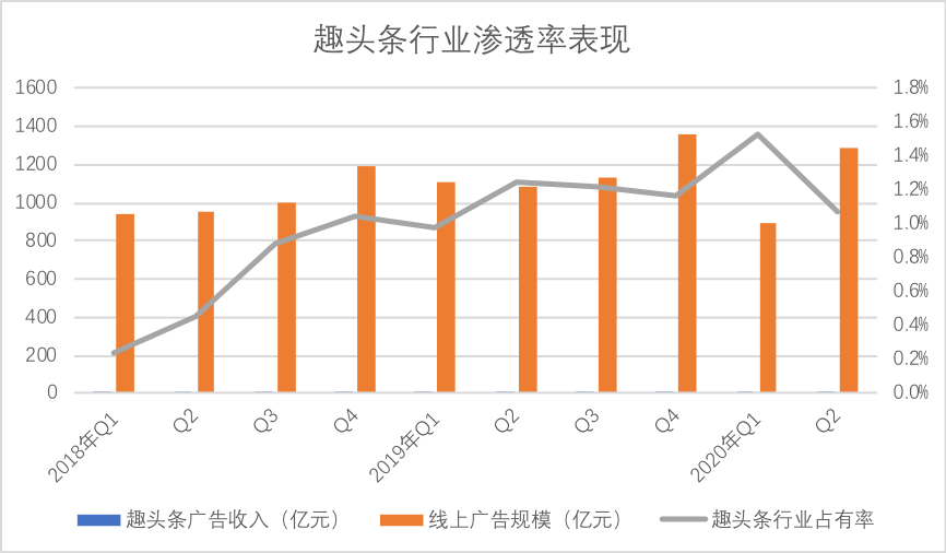 与此同时我们也有必要提醒趣头条:2020年Q2,用户在线总时长环比下降约7亿小时,这意味着,在趣头条的品牌现状下,广告的溢价空间相对较窄,若无流量规模效应,中短期内将面临严峻的成长性问题。