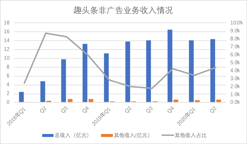 需要强调的是,在2019年之前,趣头条广告系统更加依赖第三方广告平台(主要是百度联盟广告),其他收入在此之前是包括与第三方广告平台的代理收入,但此后随着广告业务自营的拓展,此部分收入其后已逐渐消失,将此因素纳入分析后,很容易看到,“其他业务”收入的占比基本持续攀升。