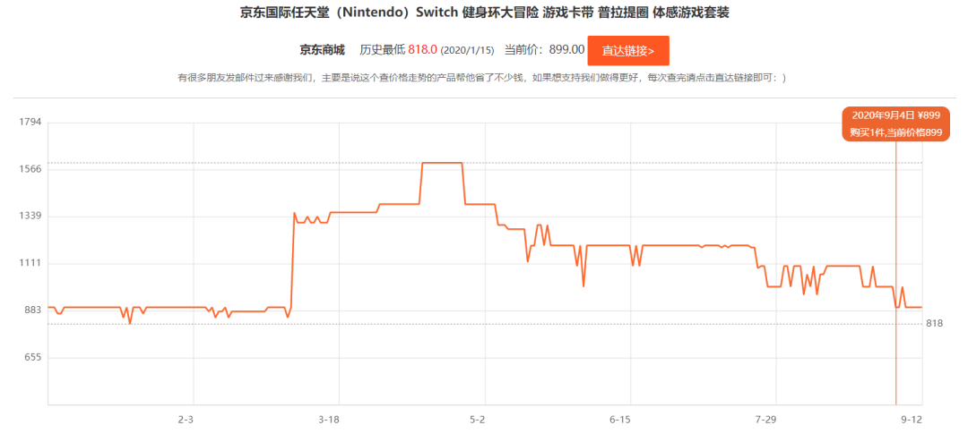 此前的京东、淘宝上大部分店铺海外行健身环套装售价都是从发售伊始的600-700元区间,一度涨价到1500元,最高甚至达到了1999元。国行健身环推出后,海外健身环售价回落并稳定在800元左右。除了海外逐步恢复量产,大批国行玩家的需求被解决,导致海外版卡带的潜在需求减少也是原因之一。