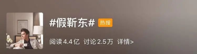 一时间,疯狂的靳东老年粉丝和真假靳东引发舆论关注,#假靳东#话题一度冲上热搜第一。截止发稿前,#假靳东#的微博话题阅读量已经突破4.4亿,讨论超过2.5万。