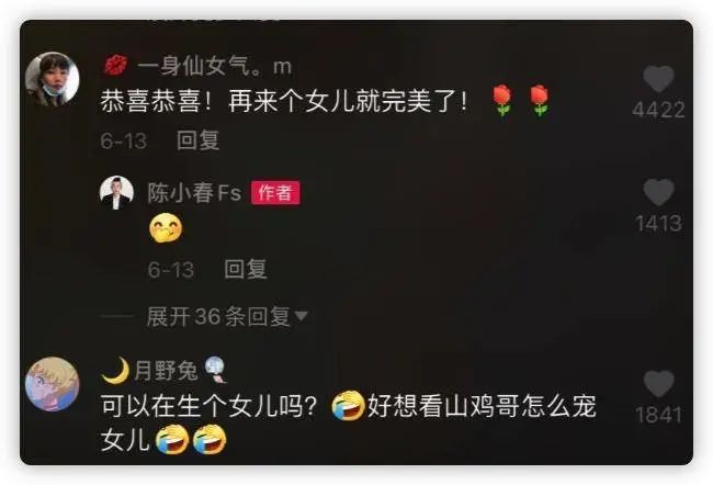 每条视频的评论区,都有很多粉丝把这个账号视作陈小春本人,真情实感地留言表达喜爱,以及对幸福的一家四口的羡慕和祝福。