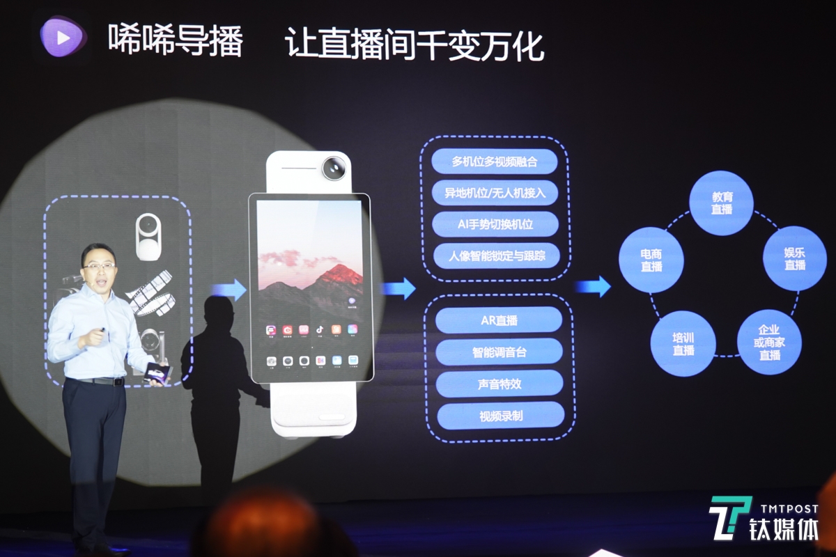 唏唏导播则提供虚拟背景、AI手势切换机位以及不同声音特效等功能,增加直播气氛。