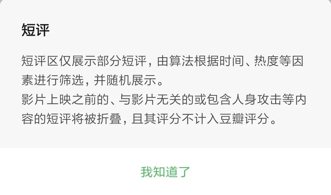 10月30日,《新浪科技》一记洛阳铲挖出了豆瓣电影短评机制的坟。其在《豆瓣电影更改短评显示机制:算法筛选,仅展示部分短评》一文中指出,豆瓣电影更改了短评显示机制,不再显示全部短评。