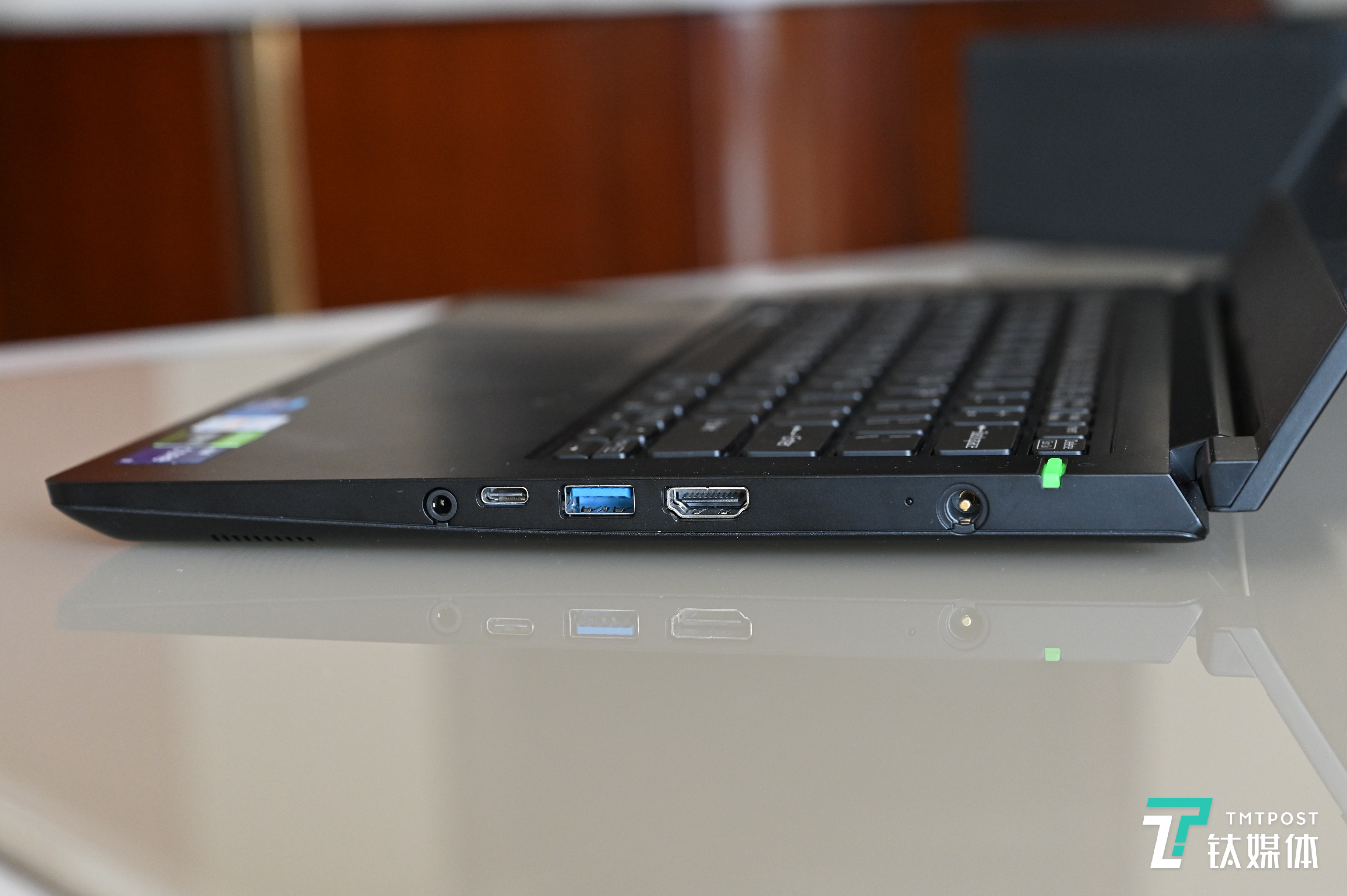 右侧配置了电源接口、HDMI输出端口、USB Type-A 端口、USB Type-C 端口以及3.5mm立体声迷你插孔。