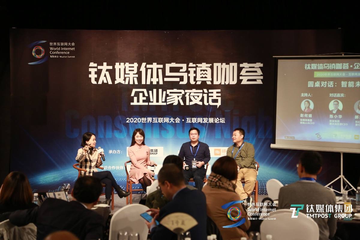 在11月23日晚,钛媒体“企业家夜话”乌镇咖荟第三场圆桌,钛媒体集团创始人&CEO赵何娟对话华为消费者业务云服务总裁张平安、到家集团兼天鹅到家CEO陈小华,以及知名科幻作家&童行学院创始人郝景芳,共同畅想智能未来。