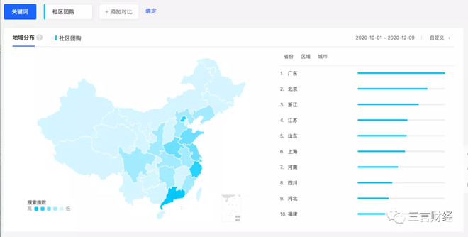 据百度指数显示,社区团购在近两个月来,北京地区搜索量排名第二,众多报道社区团购的一线媒体、投资机构很多都在北京,它们热火朝天的讨论着社区团购。结果,北京地区几乎没有网点。