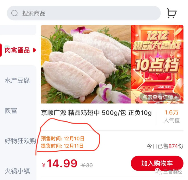 可以看到,平台上售卖的商品均有预售时间和提货时间信息,一般为当日购,次日达。