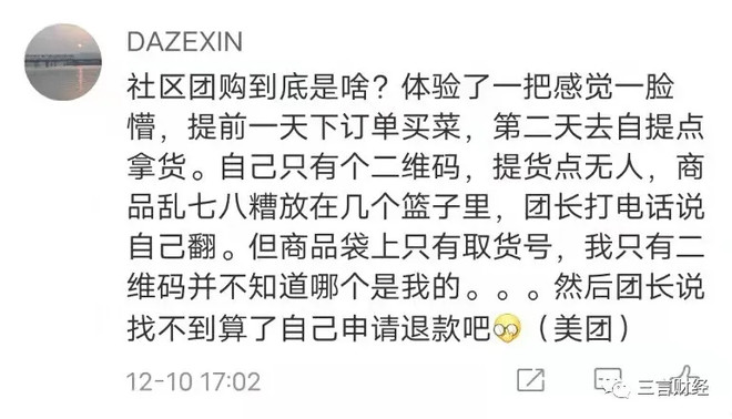 网友:社区团购体验后一脸懵