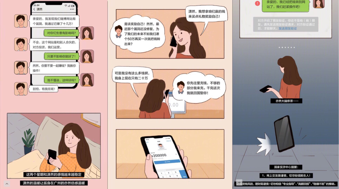 吴悠说,足够吸引人的人设之下,骗子又会摸准人性的弱点写好剧本,这一步类似PUA,让被骗者觉得自己终于遇到灵魂契合的伴侣了。“如果你没钱,对方就会说我不在乎钱,我在乎的是你的人。他们总能用放大镜寻找到你的优点,说给你听。”这样就会建立好感和信任基础,在此之上,加上人们普遍具有的暴富心理,很容易一步步落入骗子的陷阱。