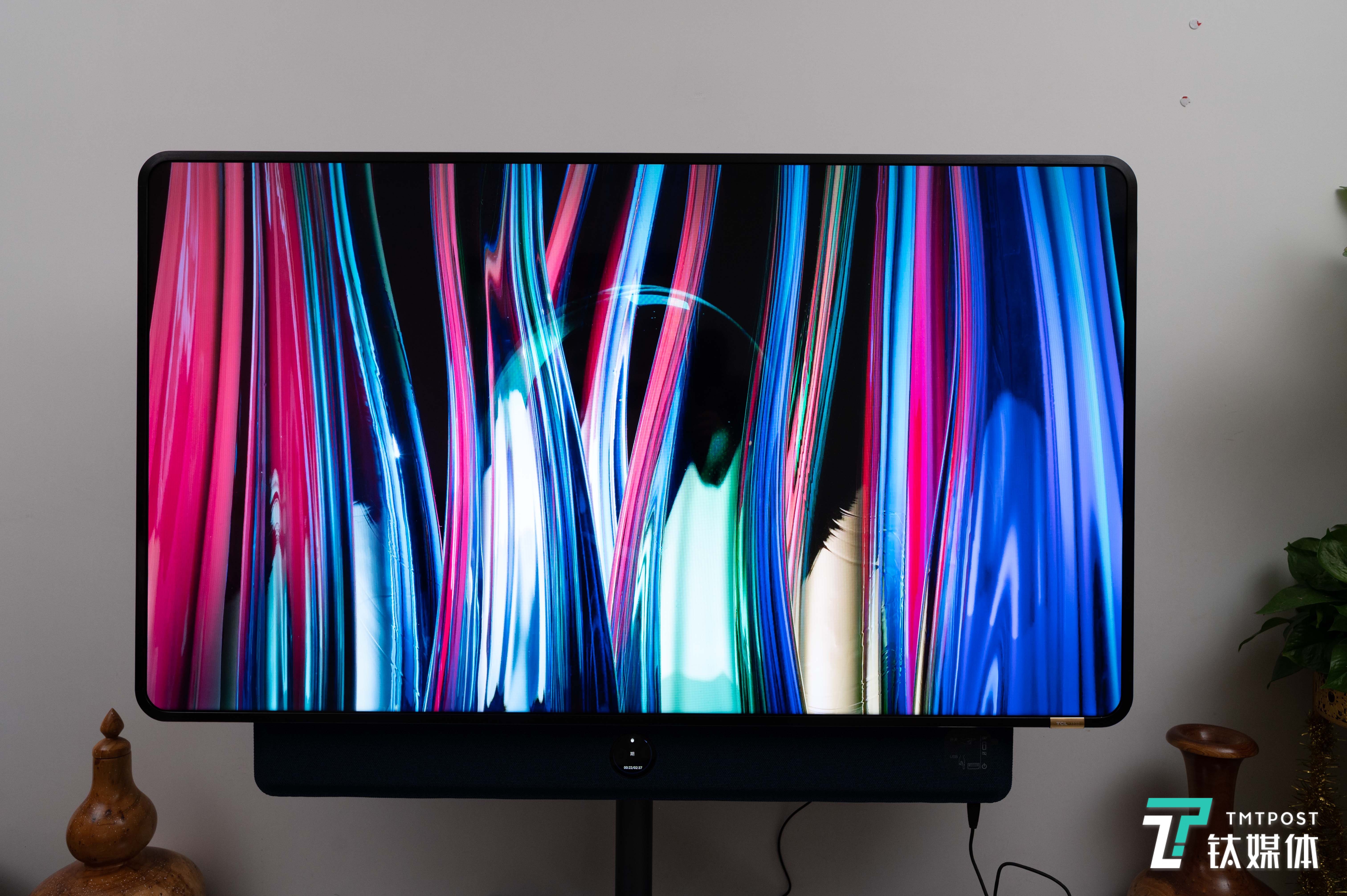 点击一下,你就会看到电视开始旋转,并且还有一个过场动画,官方宣称旋转机构的寿命可以达到10万次,至少在整个电视的使用周期内不用担心质量问题的出现。