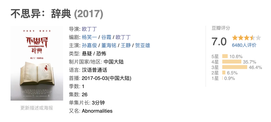 “不思异”系列的打法不同,这一横屏短内容在2017年选择了国内观众较少接触的悬疑惊悚为切入点占领观众的认知。随后该品牌将内容品类取向进行了差异化,在其出品的若干剧集中,有主打惊悚悬疑的,也有主打幻想寓言的、还有文艺表达的等等。在统一品牌的风格调性下,有意选择差异化的内容进行运营,这与今年爱奇艺成功推出的“迷雾剧场”不谋而合。