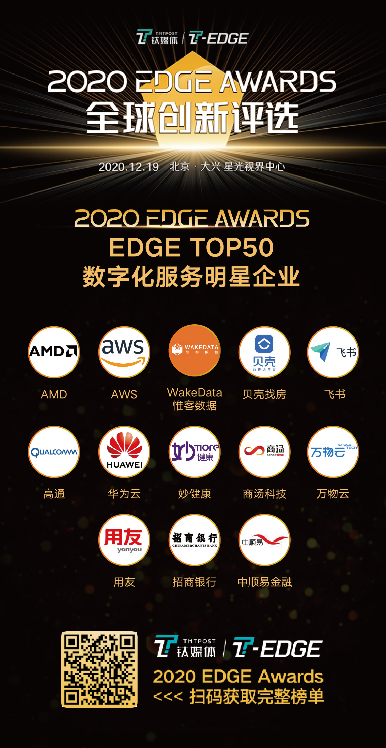 钛媒体 2020 EDGE TOP 50 科技企业之「数字化服务明星企业」的最终评选结果,已经在12月19日举办的钛媒体2020 EDGE Awards颁奖盛典晚宴上揭榜。