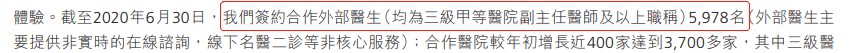 2020H1财报显示,平安好医生签约的外部医师,全部来自三甲医院,拥有主治、副主任、主任医师资质。