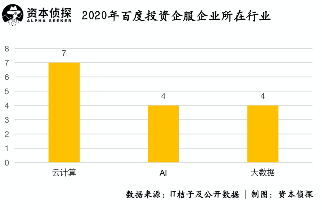 与腾讯、阿里巴巴都不同,百度2020年TO B赛道的投资依然集中在人工智能、云计算和大数据这些领域,这与百度的业务布局同样关联。