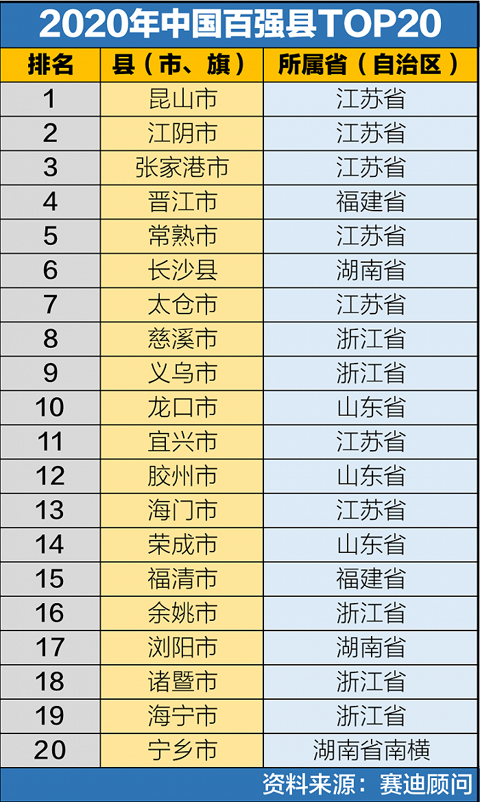 2020年中国百强县TOP20