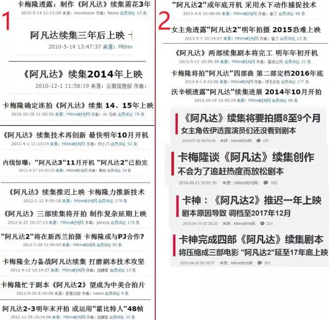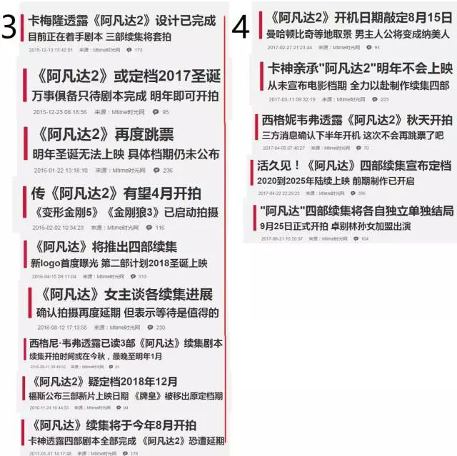 然而此后这两部续集就开始了漫长的“跳票”与“溜粉”之旅。档期有“确定2016年12月”、“推迟一年定档2017年12月”、“再度跳票或将于2018年12月上映”等等说法,爆料与辟谣来回反复。