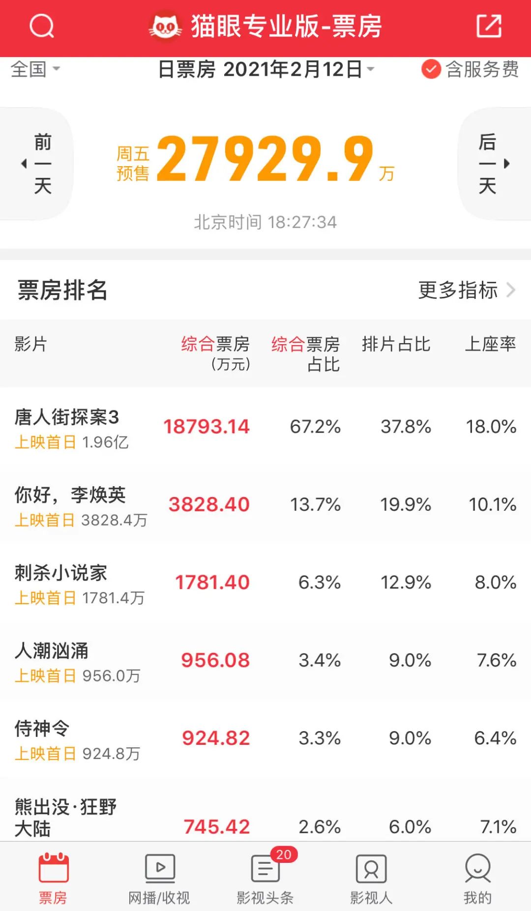这也确实影响到了《唐探3》的排片占比。许非告诉深燃,他接触的影城里有的只给他不到9%的排片占比,“实在太低了,我各种给他算,现在这种排片,大年初一得亏多少钱。但人家就是不听,从店长到老板我都在磨,都没有用,死活不答应排片。”他说。